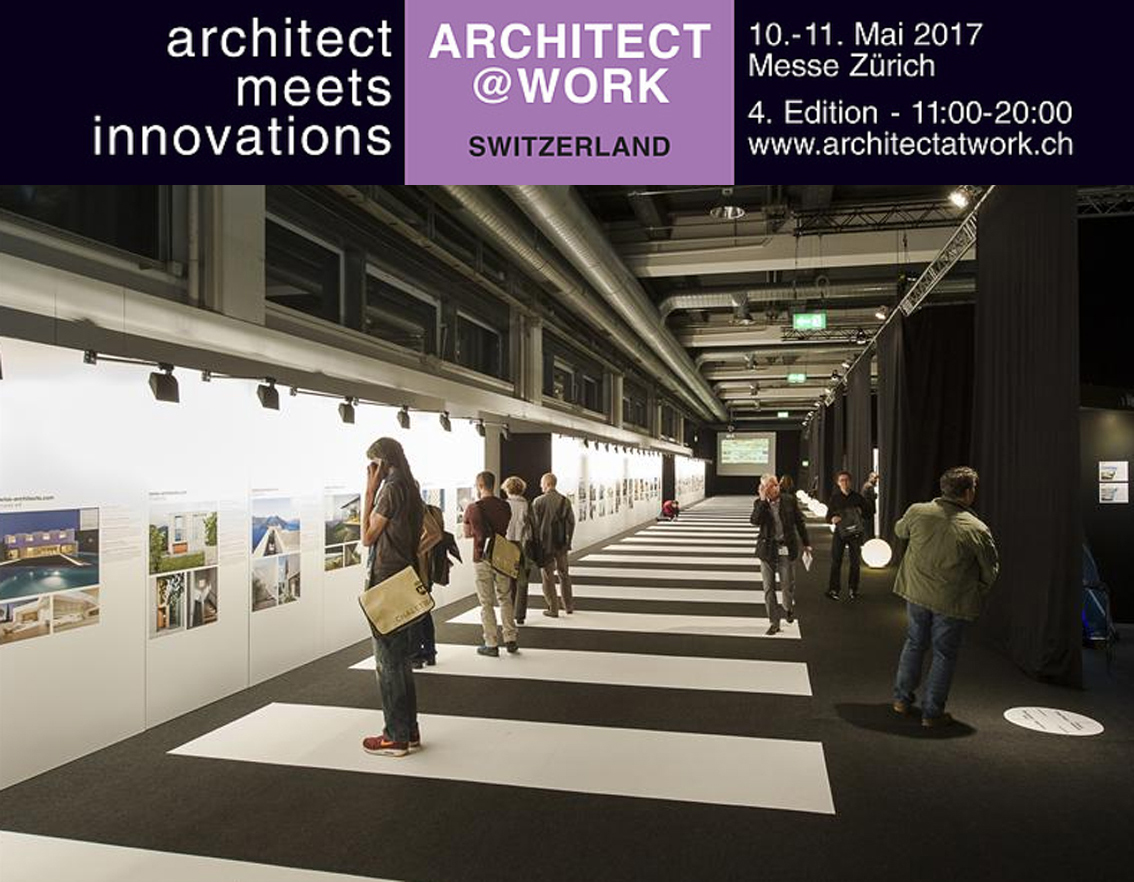 Nach den erfolgreichen vergangenen Editionen der ARCHITECT@WORK, kündigen wir die vierte Ausgabe der ARCHITECT@WORK Zürich an. Die Veranstaltung findet am 10. und 11. Mai 2017 wieder in der Halle 3 und 4 der Messe Zürich statt.